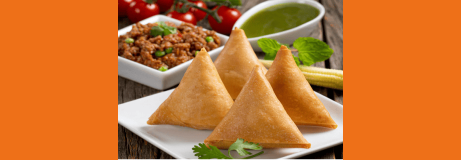Vegi. SamosaBeignet van pasteitje gevuld met groene erwten en aardappelen